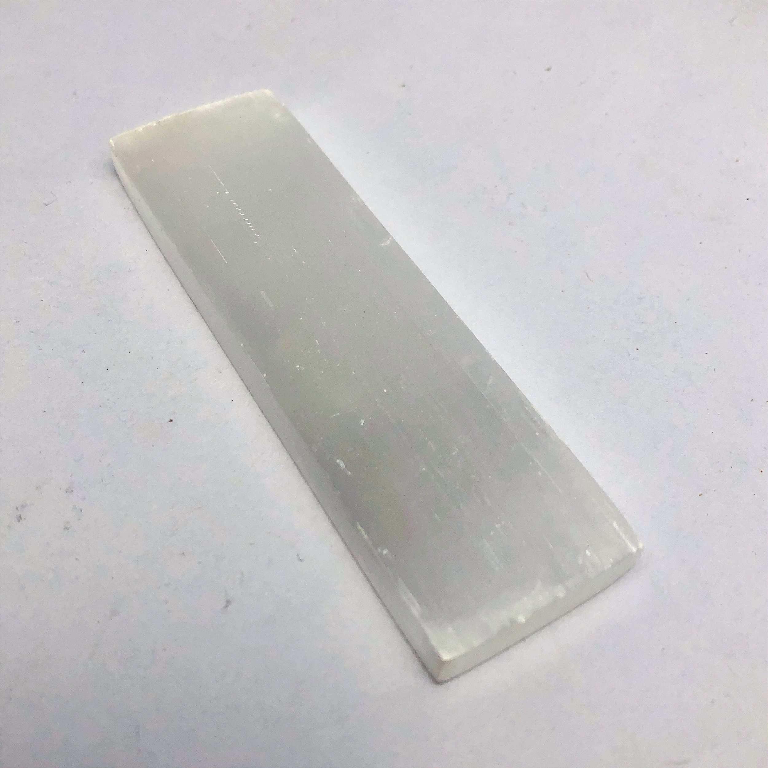 Placa de Selenita retangular e polida de 10cm de comprimento.